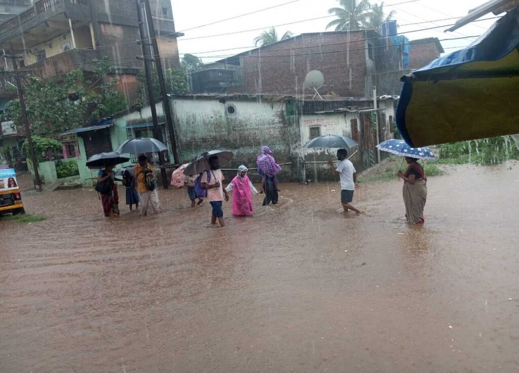 मराल गांव में घुटनों तक पानी भर गया है और छात्र, बुजुर्ग और महिलाएं डर के मारे अपने घरों से बाहर निकल आए हैं